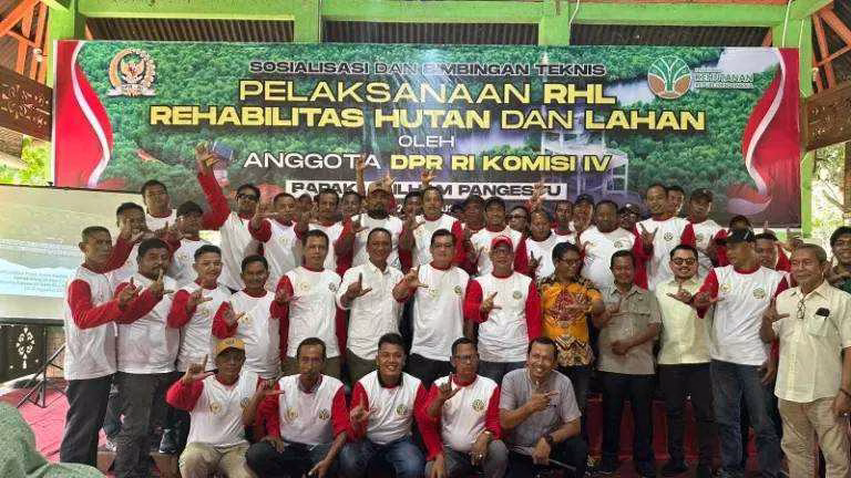 Anggota DPR RI dari Fraksi Golkar, H Ilham Pangestu membuka acara sosialisasi dan bimbingan tekhnis (Bimtek) Rehabilitasi Hutan dan Lahan (RHL), di RTH Hutan Kota, Rabu 20 Agustus 2025.