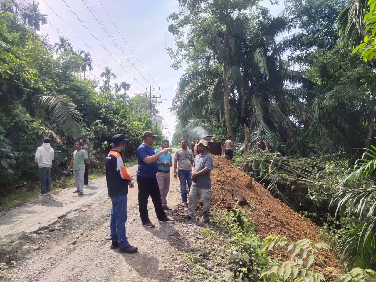 Pemerintah Kabupaten Aceh Tamiang melalui Badan Penanggulangan Bencana Daerah juga turut berpartisipasi, menghadirkan alat beratnya berupa eksavator memudahkan dalam proses gotong-royong rehab jalan tersebut.