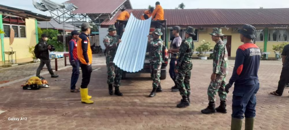 Gerak cepat Koramil 02/Karang Baru yang di pimpin langsung oleh Danramil Letnan Satu Inf Faisal Hadi laksanakan kegiatan gotong royong bersama BPBD Aceh Tamiang dan Staf Kecamatan Karang Baru pasca Hujan Angin Puting Beliung yang mengakibatkan salah satu Sekolah mengalami kerusakan parah bertempat di SD IT Darul Mukhlisin (SDIT DM red) desa Dalam, Kecamatan Karang Baru, Kabupaten Aceh Tamiang. Selasa (13/05/2025) pagi.