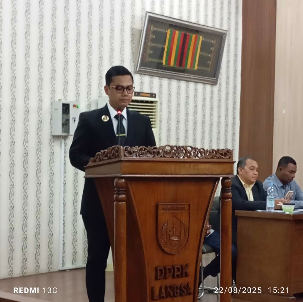 Rapat Paripurna DPRK Langsa yang digelar pada hari ini dengan agenda jawaban Pemerintah Kota Langsa atas penyampaian pandangan umum Fraksi – Fraksi DPRK Langsa terhadap Rancangan Qanun (Raqan) Kota Langsa Tahun 2025 yang akan di sampaikan oleh Walikota Langsa Jefry Santana S Putra, SE.