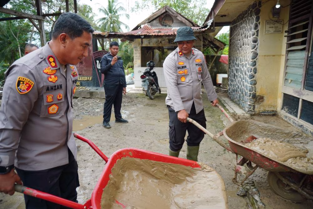 “Kami mengerahkan personel untuk membantu membersihkan sisa lumpur agar lingkungan kembali bersih dan aktivitas masyarakat dapat berjalan normal,” ujarnya.