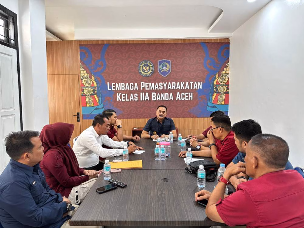 Usai mengikuti Sosialisasi tentang Standar Keamanan dan Ketertiban oleh pihak Dirjen Pemasyarakatan melalui via Zoom, Kepala Lapas Kelas IIA Banda Aceh bergerak cepat untuk mengadakan rapat internal bersama Pejabat Struktural pada ruang Kalapas, Kamis (28/08/2025).