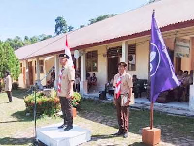 Kwartir Ranting (Kwarran) Setia Bakti menggelar Upacara Peringatan Hari Ulang Tahun (HUT) Pramuka ke-64 di halaman SMP Negeri 1 Setia Bakti, Kamis (14/8/2025).