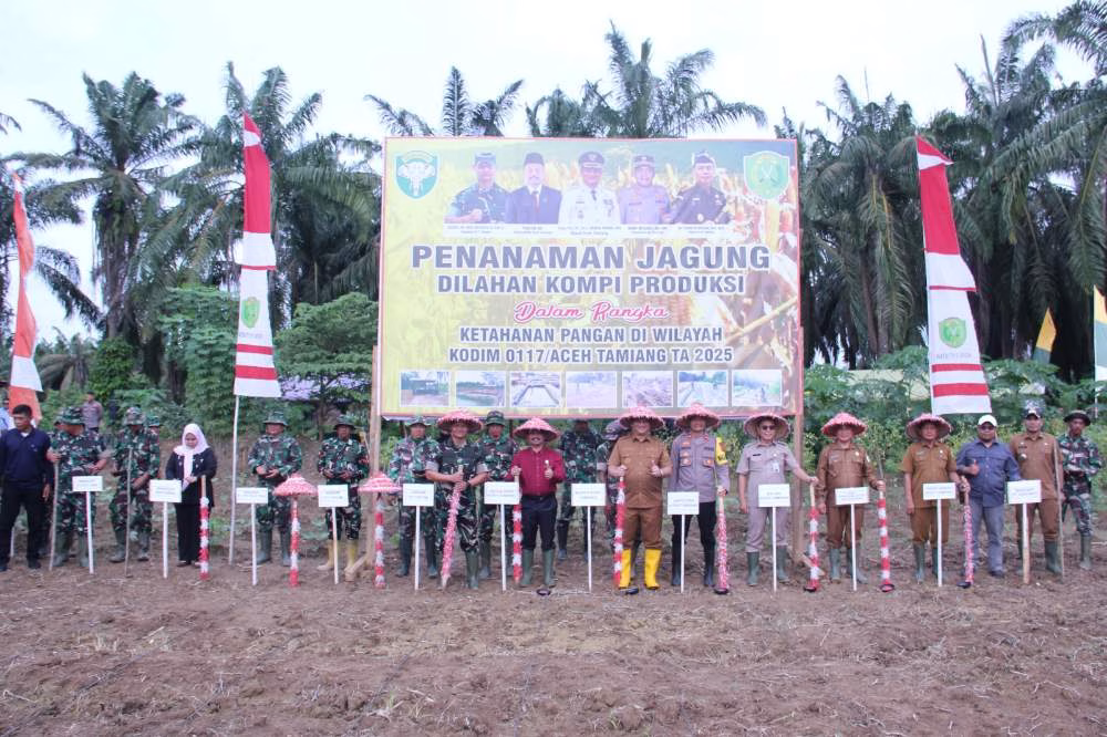 Dalam rangka mendukung program strategis pemerintah menuju kemandirian dan ketahanan pangan nasional, Komando Distrik Militer (Kodim) 0117/Aceh Tamiang melaksanakan kegiatan penanaman jagung perdana di lahan Kompi Produksi seluas lima hektar yang berlokasi di Kecamatan Kejuruan Muda, Kabupaten Aceh Tamiang, Selasa (15/07/2025). Kegiatan ini merupakan tindak lanjut dari Perintah Pangdam Iskandar Muda melalui Surat Telegram Pangdam IM Nomor: ST/622/2025 tanggal 14 April 2025, tentang Rencana Pembentukan Unit Kompi Produksi untuk pemanfaatan dan penyiapan lahan aplikasi di masing-masing Kodim jajaran Kodam Iskandar Muda.