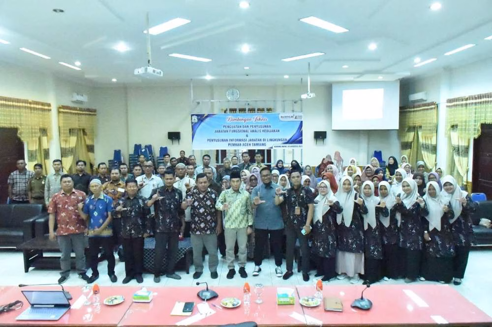 Pemerintah Aceh Tamiang menyelenggarakan Bimbingan Teknis Penguatan dan Penyusunan Jabatan Fungsional Analis Kebijakan di Aula Setdakab, Kamis, (28/8/25).